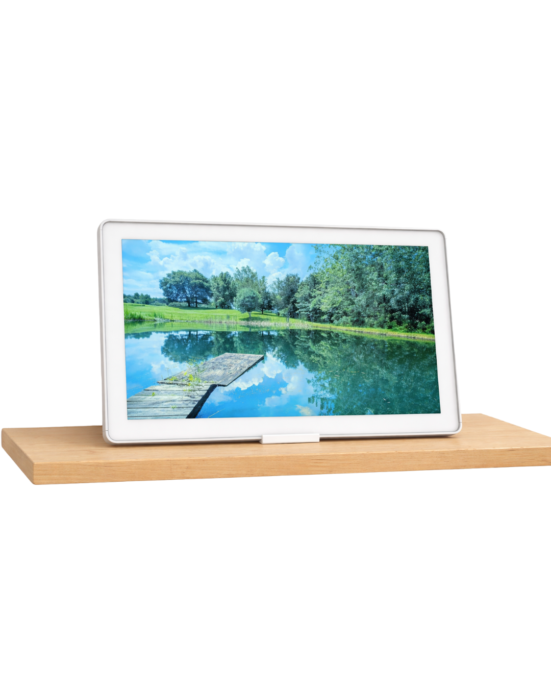 Place your Skylight Calendar Max directly onto the stand—no screws, no drilling, no adhesives. The fixed-angle base keeps the screen stable and visible on desks, counters, or tables.